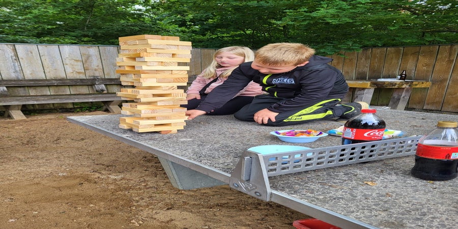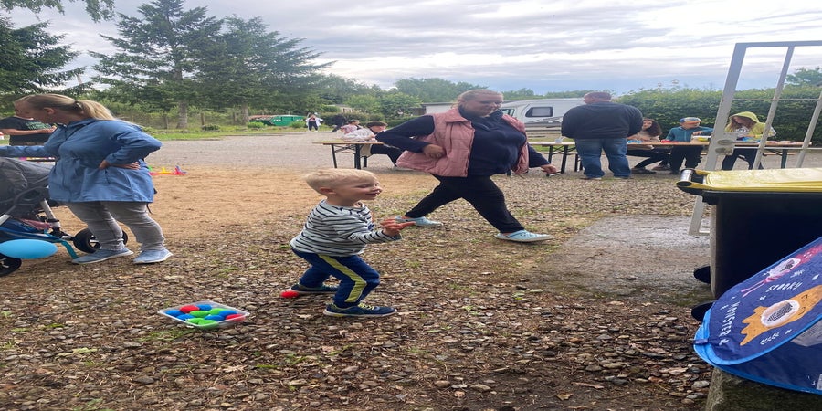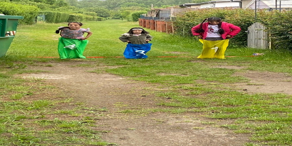 Stationen z. B. Sackhüpfen mit Eierlauf, Dosenwerfen, Stiefelweitwurf u. v. m. ausgetobt.