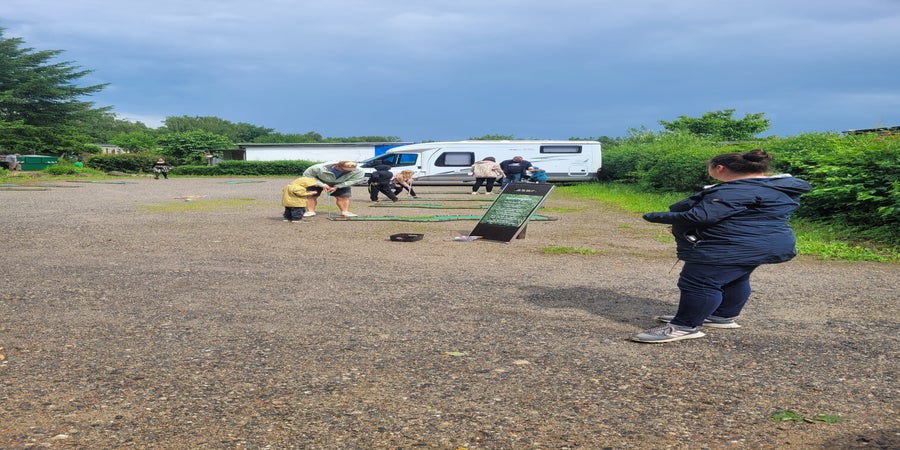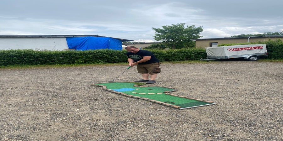 Haben wir für die Kinder organisiert. Diese wurde mit voller Begeisterung Loch für Loch gespielt.